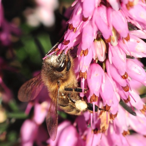 La bruyère de Darley (Erica x darleyensis) de la famille des éricacées Certains arbustes ou sous-arbrisseaux ont quasiment toutes les qualités requises pour figurer en première place dans les jardins destinés aux pollinisateurs. C’est le cas de la bruyère de Darley obtenue par hybridation entre la bruyère d’hiver (Erica carnea) d’origine alpine et la bruyère dite méditerranéenne (Erica erigena), en réalité d’origine plutôt atlantique (on peut aussi la rencontrer sur certaines falaises irlandaises et on l’appelle aussi bruyère de l’Ouest). Cet hybride interspécifique, donc stérile, présente une floribondité remarquable et une durée de floraison sans égale. En fonction des nombreux cultivars proposés par les pépiniéristes, elle est capable de fleurir sans discontinuer de novembre à avril. Si on ajoute qu’elle se contente de sols pauvres, bien drainés, donc sans excès d’humidité , on ne peut qu’être séduit. Son port étalé permet de réaliser des tapis denses en couvre-sol en plein soleil de préférence, cette plante étant plutôt héliophile.